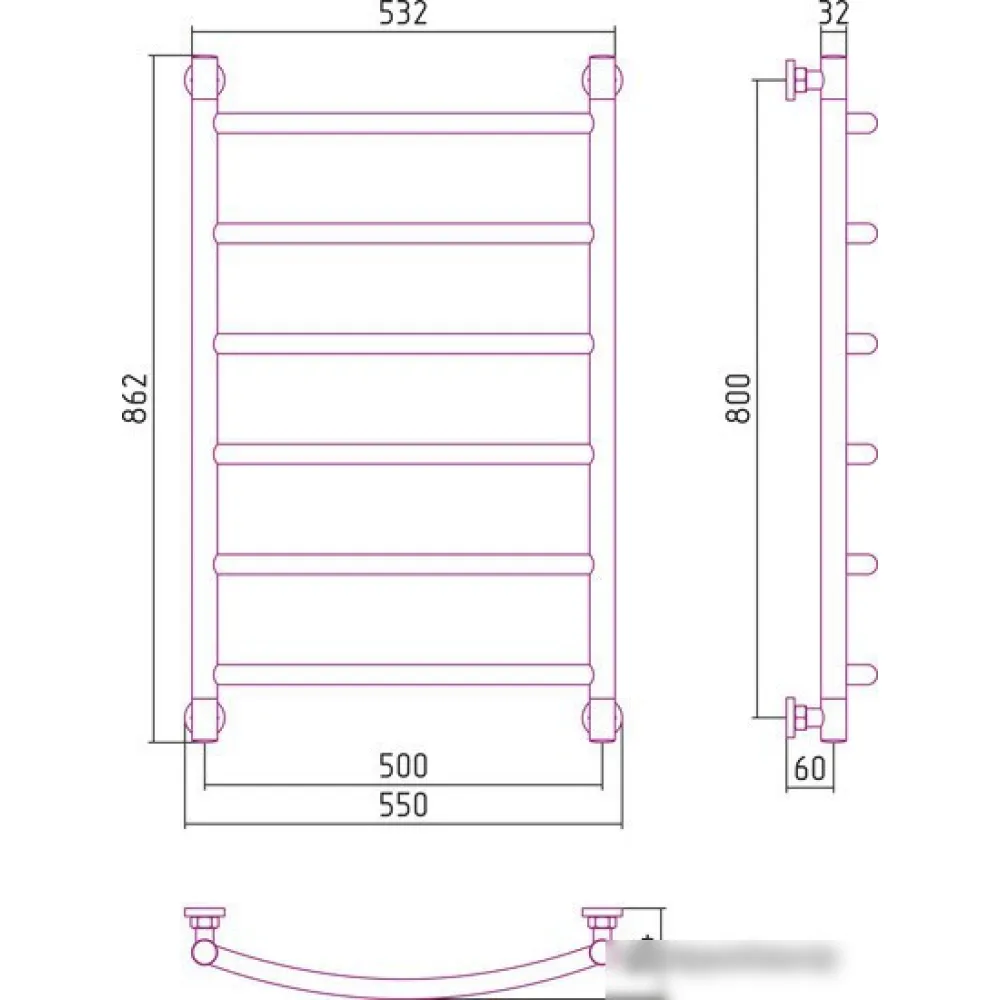 водяной, "лесенка", нержавеющая сталь, подключение диагональное, 86.2x55 см, цвет: полированная сталь
