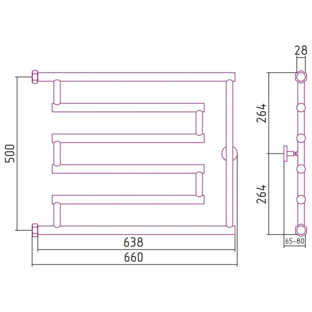 Полотенцесушитель Сунержа High-Tech model "L+" 500х650 00-4052-5065