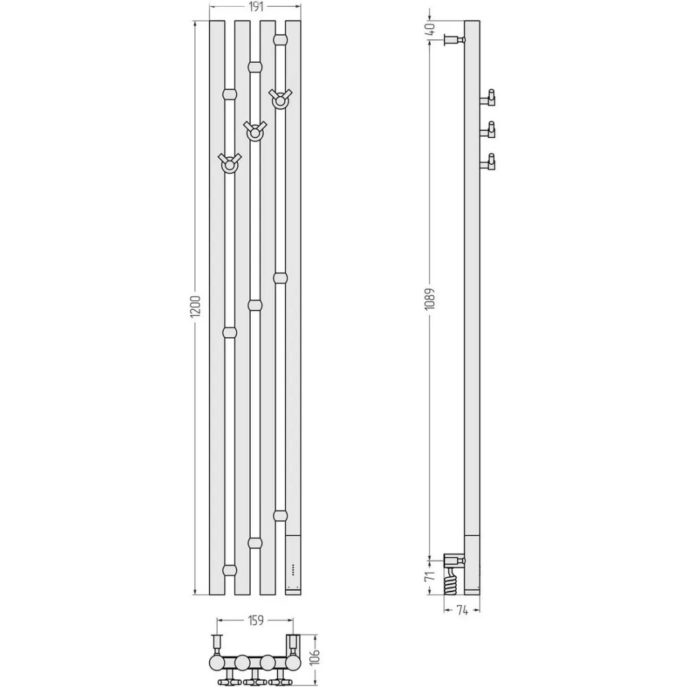 электрический, вертикальный, нержавеющая сталь, подключение нижнее, таймер, терморегулятор, 120x19.1 см, цвет: черный