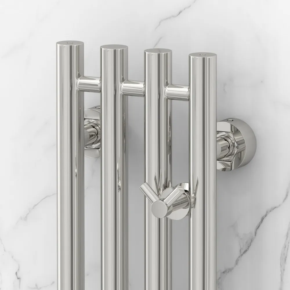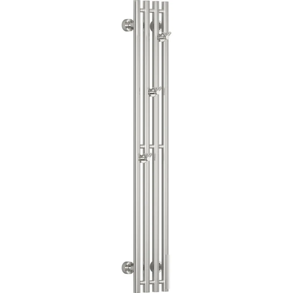 водяной, вертикальный, нержавеющая сталь, подключение нижнее/диагональное (150 мм, 1/2"), 120x20 см, цвет: хром