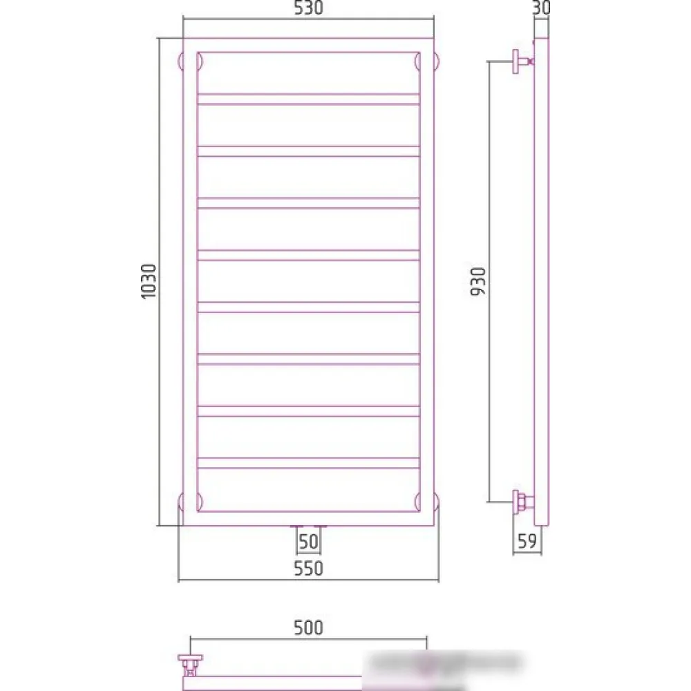 водяной, "лесенка", нержавеющая сталь, подключение нижнее, 103x55 см, цвет: полированная сталь