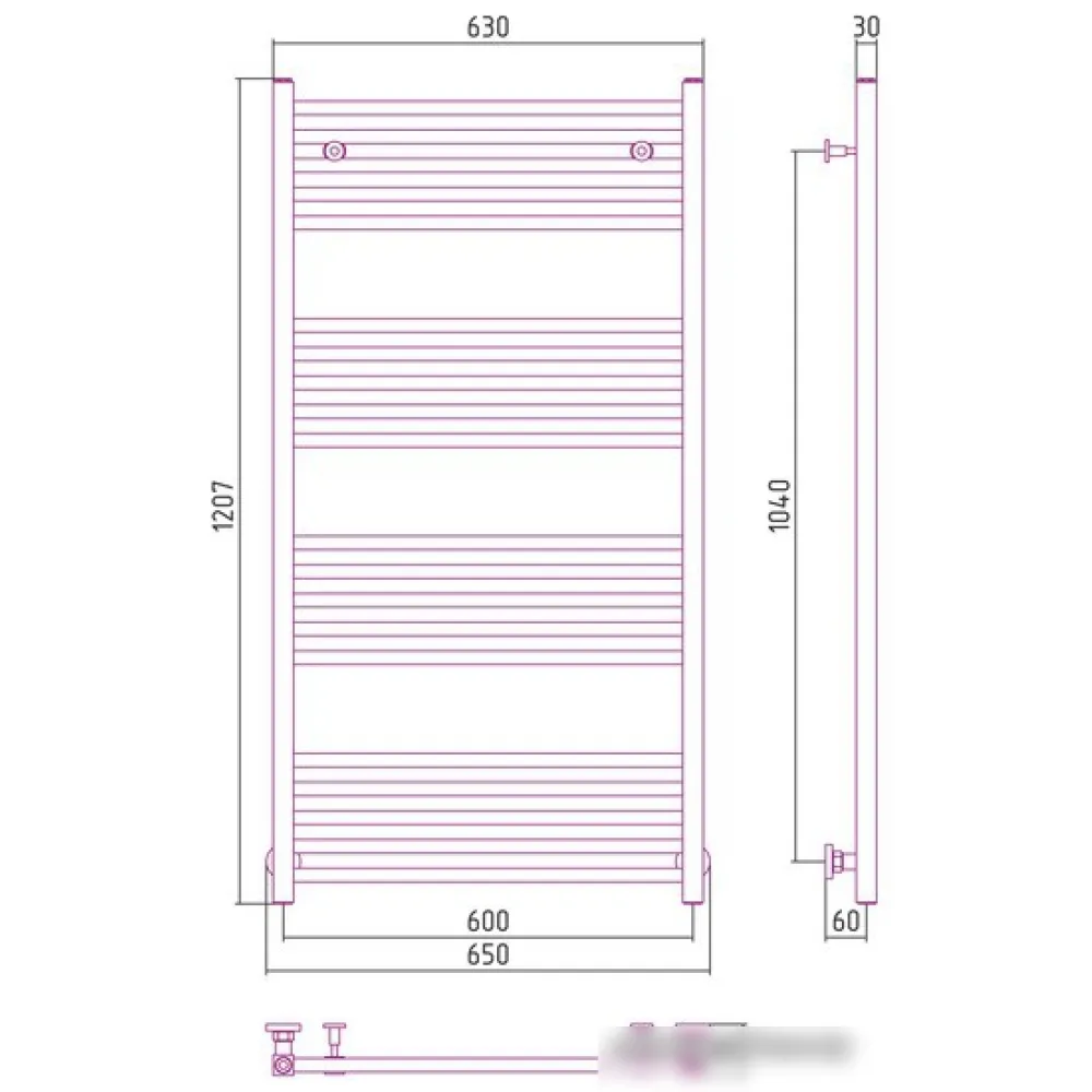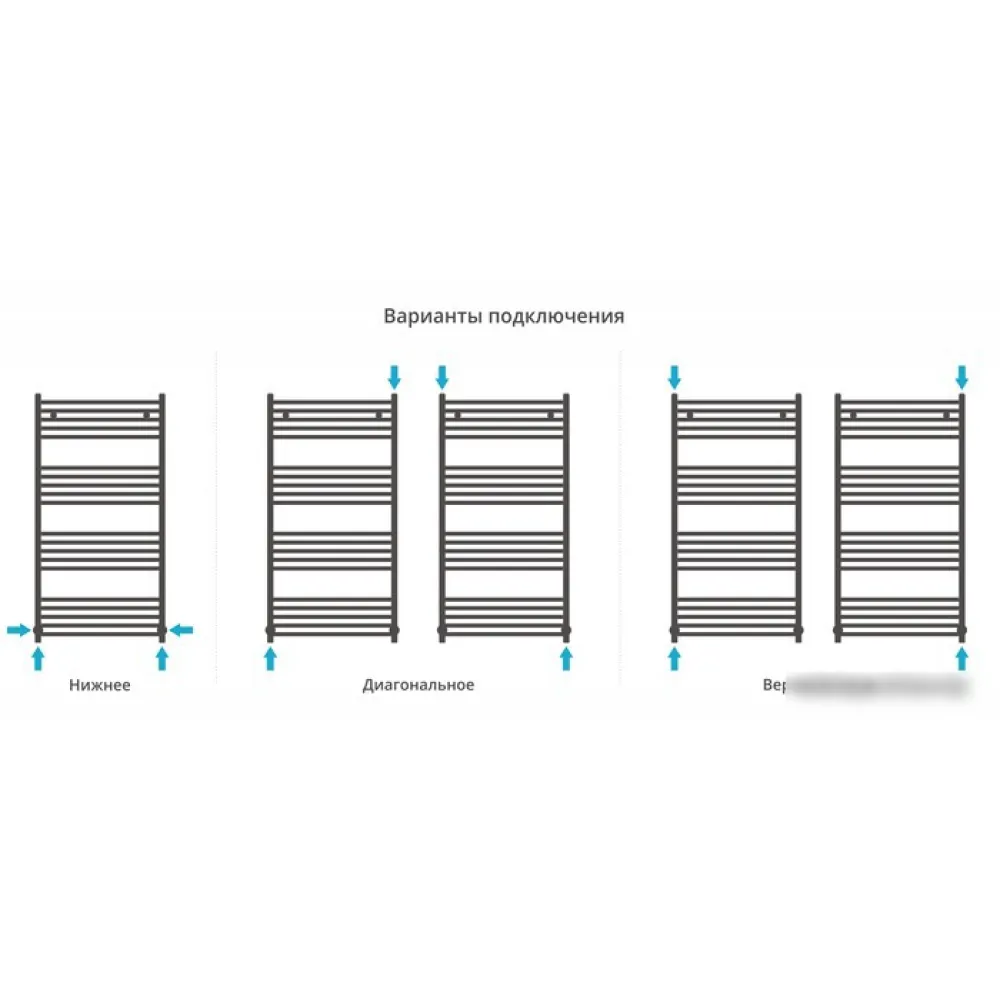 водяной, "лесенка", нержавеющая сталь, подключение нижнее/диагональное/боковое, 120.7x65 см, цвет: хром