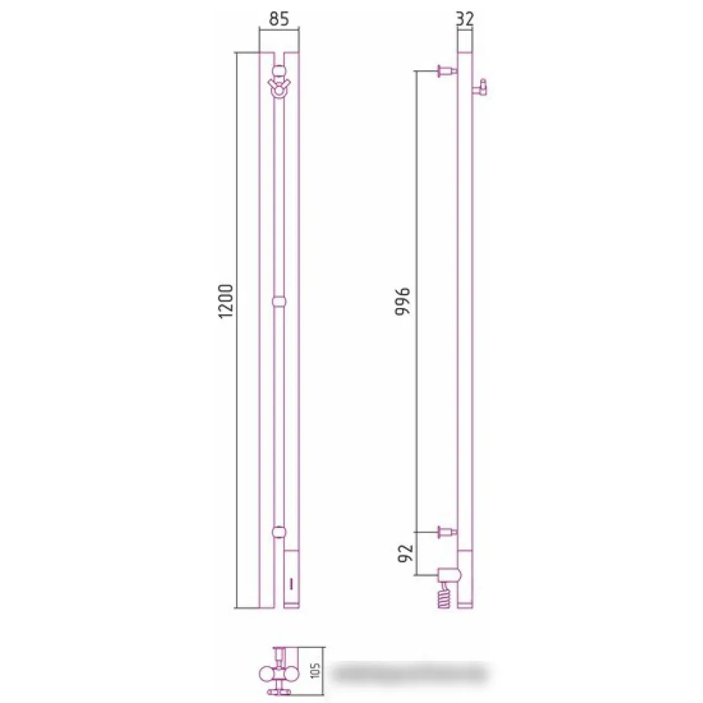 электрический, вертикальный, нержавеющая сталь, 120x8.5 см, цвет: белый