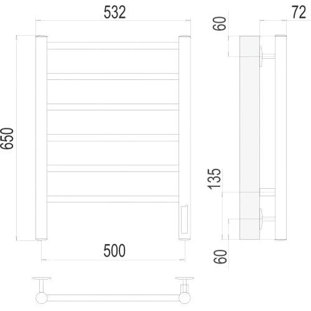 электрический, "лесенка", нержавеющая сталь, подключение нижнее (500 мм, 1/2"), терморегулятор, 65x53.2 см, цвет: хром