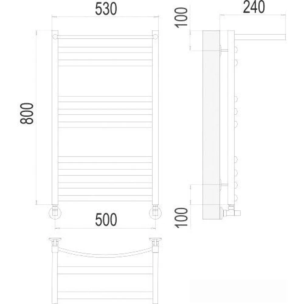 водяной, "лесенка", нержавеющая сталь, подключение нижнее (500 мм, 1/2"), 80x53 см, цвет: хром