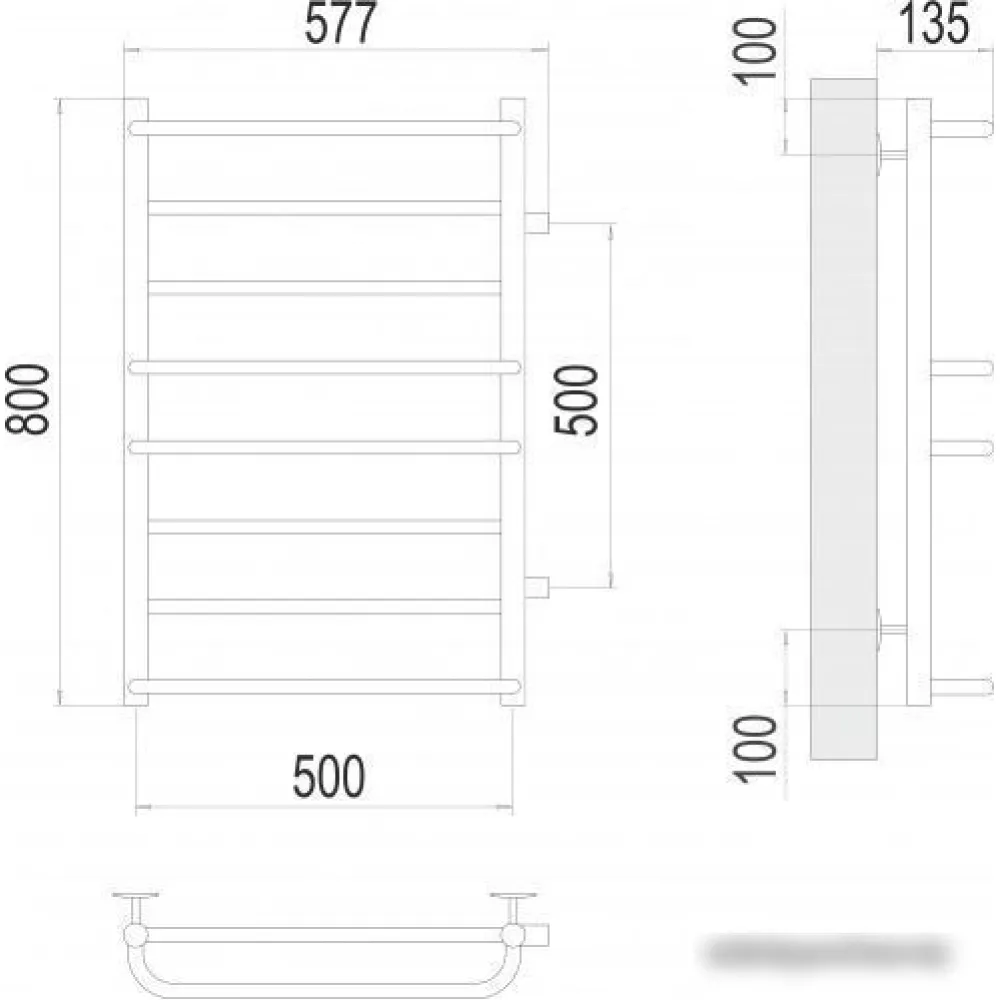 водяной, "лесенка", нержавеющая сталь, подключение боковое, 80x57.7 см, цвет: хром