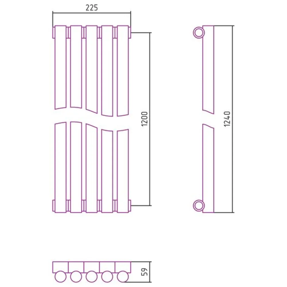 стальной трубчатый, боковое/нижнее подключение, высота: 1240 мм, межосевое расстояние: 1200 мм