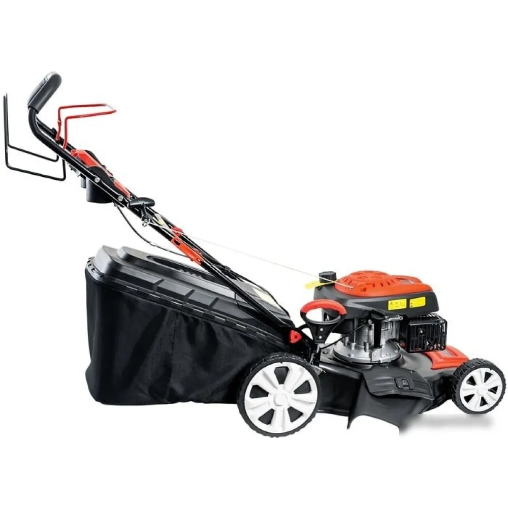 роторная газонокосилка, бензиновый двигатель (3.5 л.с.), ширина скашивания: 51 см, мягкий травосборник 60 л, корпус: сталь