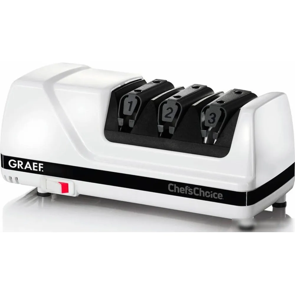 | Информация | - Точильный станок Graef CC 120 3656 - электрическая точилка с алмазными и керамическими дисками, предназначенная для заточки бытовых и коммерческих ножей под углом 20°. - Фаза хонингования также подходит для зубчатых лезвий, а направляющие лезвий из эластомера обеспечивают точный угол подвода к дискам. - EDGESELECT® позволяет формировать острую режущую кромку с гладко полированным краем для резки деликатных продуктов или получить кромку с мельчайшими зубцами для резки жестких волокнистых продуктов и мяса. - Trizor® имеет три грани заточки под разными углами, обеспечивая надежную кромку с тройным скосом. - Ultrastop® оснащена гибкими шлифовальными дисками, обеспечивающими уникальное полированное лезвие ножа. -- Точилки для ножей GRAEF (кроме CC80) оснащены очень точными направляющими для ножей любого вида, обеспечивая более точную заточку. -- На дисках используется алмазная пыль, что уменьшает трение о сталь ножа и истирание лезвия. - Керамический диск для финишной шлифовки/полировки работает аккуратно и практически не стирает лезвие ножа. - Фаза 1 и 2 предусматривают заточку алмазными дисками под углом 20°, а фаза 3 - мягкое восстановление остроты на стадии хонингования/полировки керамическими дисками. |