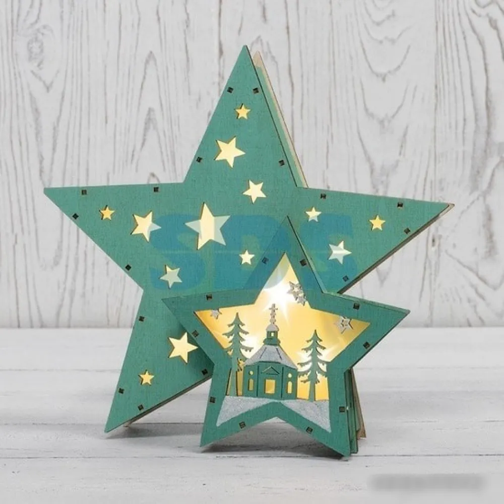 | Информация | Деревянная фигура с подсветкой «Домик Звездочета» 26-7-25 см — сказочный интерьерный декор, который создан, чтобы дарить праздничное настроение и ощущение уюта. Диодная подсветка теплого оттенка эффектно выделяет декоративные фигурки внутри основной конструкции. 8 диодов работают от 2 батареек (тип ААА) и позволяют надолго забыть о периодической замене элементов питания благодаря экономичности. Безопасные экологичные материалы не вызывают аллергии, поэтому деревянную фигурку можно использовать для детских игр. |