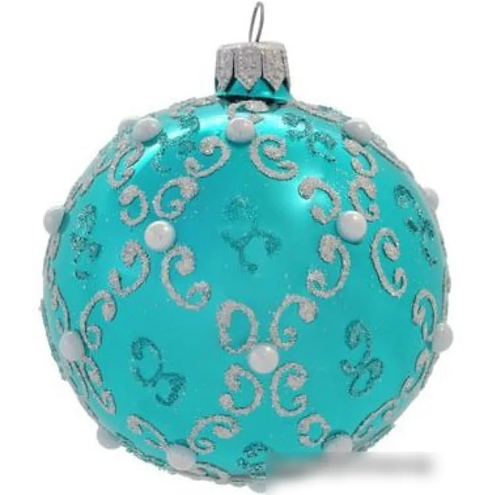 елочная игрушка, шар, цвет бирюзовый, длина 8 см, диаметр 8 см
