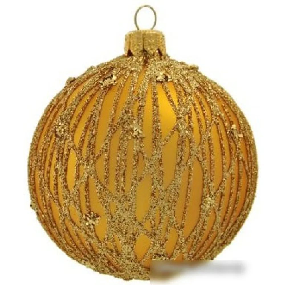 елочная игрушка, шар, цвет золотой, длина 8 см, диаметр 8 см