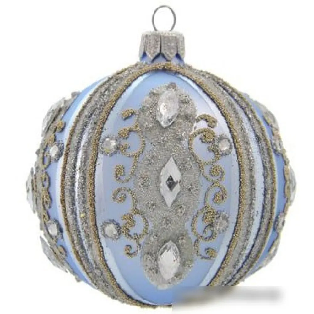 елочная игрушка, шар, цвет голубой, длина 8 см, диаметр 8 см