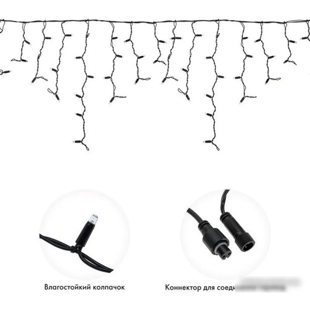 бахрома, для использования на улице, длина 4 м, 128 ламп, свечение динамическое, IP67, 8.3 Вт, провод черный каучук
