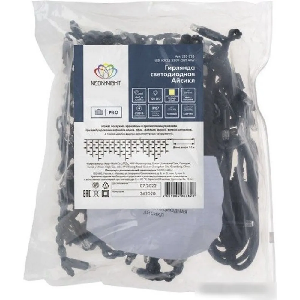 Гирлянда бахрома Neon-Night Айсикл 4.0х0.6 м 255-236-6 (теплый белый)