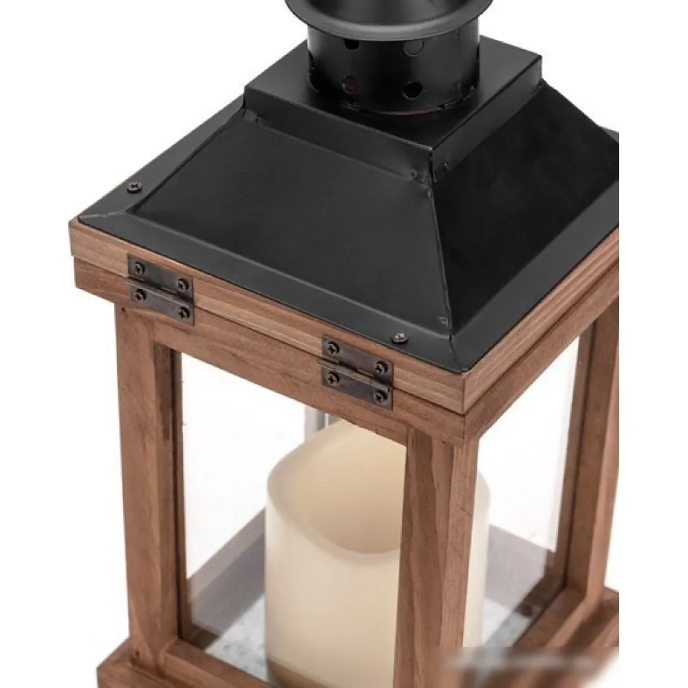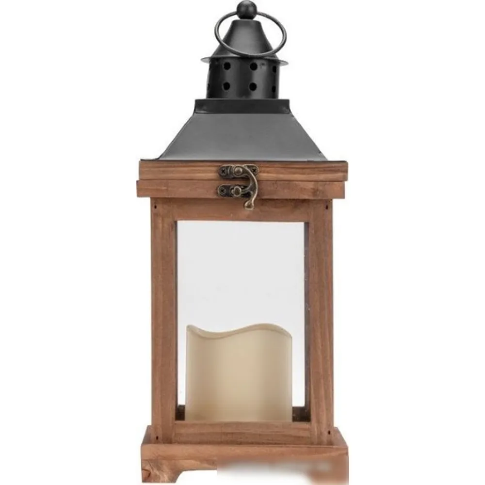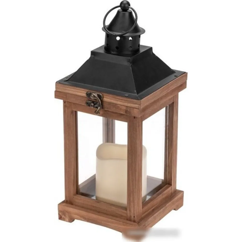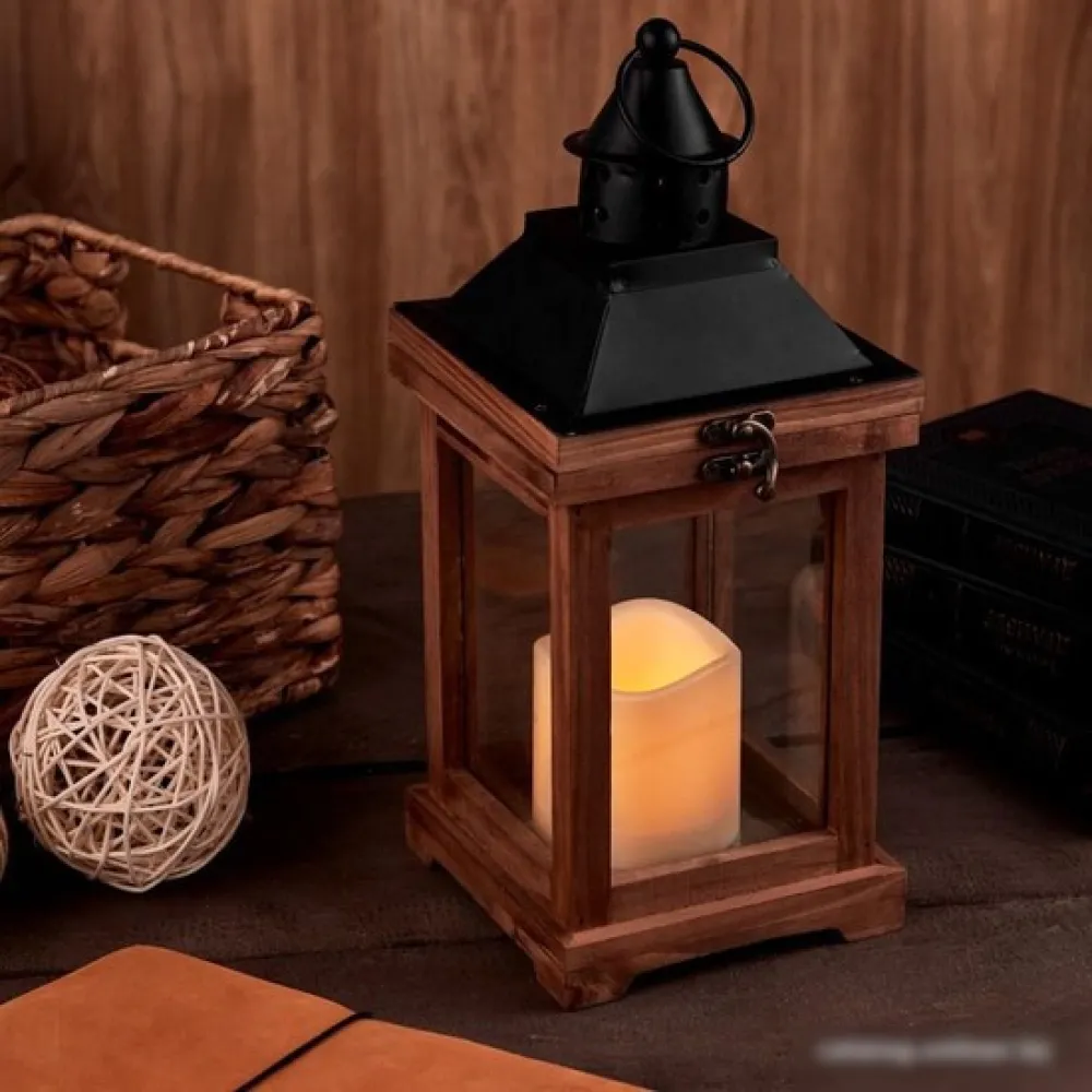 | Информация | Декоративный фонарь со свечкой – оригинальное украшение, которое принесет уют и тепло в ваш дом. Изделие предназначено для использования в интерьере. декоративный элемент подсвечивается одним диодом, имитирующим теплое пламя свечи. Корпус изготовлен из натурального дерева и имеет высоту 35 см. для размещения в подвешенном виде предусмотрено кольцо. Фонарь питается от 2 батареек типа АА, специальный отсек закрывается при помощи крышки. |