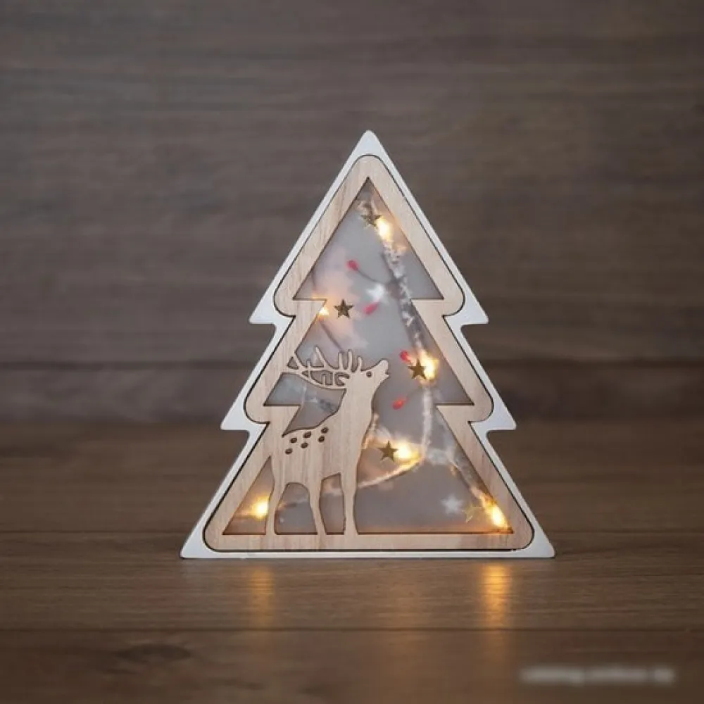 | Информация | Теплое свечение и деревянное обрамление фигуры создаст уютную атмосферу и подарит ощущение праздника. Может стать прекрасным подарком для ваших близких или интересным интерьерным решением в вашем доме.Тип и количество источников света: 6 LED.Размер: 160x20x180 мм. |