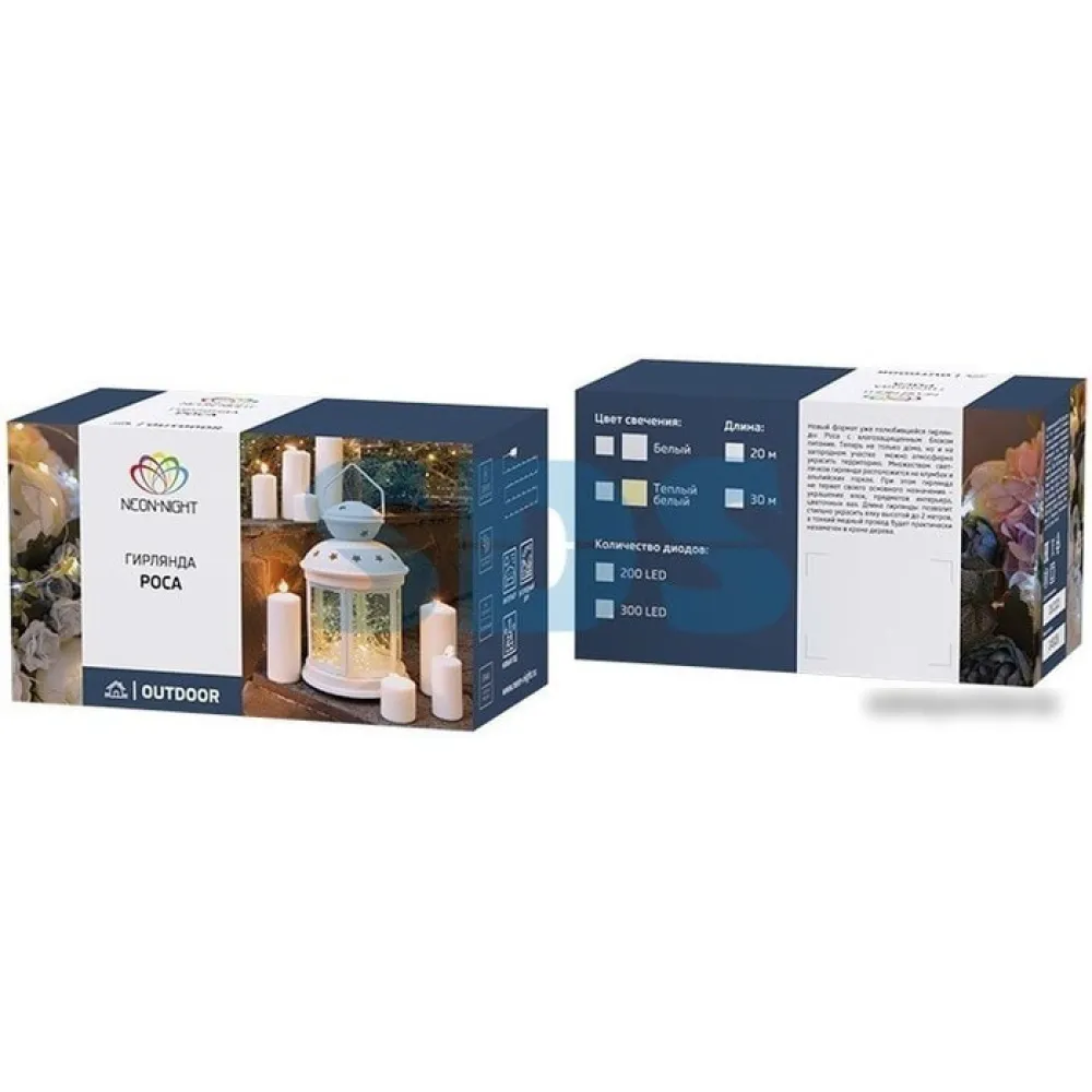 гирлянда, длина 20 м, 200 ламп, свечение постоянное, IP44, 3.6 Вт, провод прозрачный ПВХ