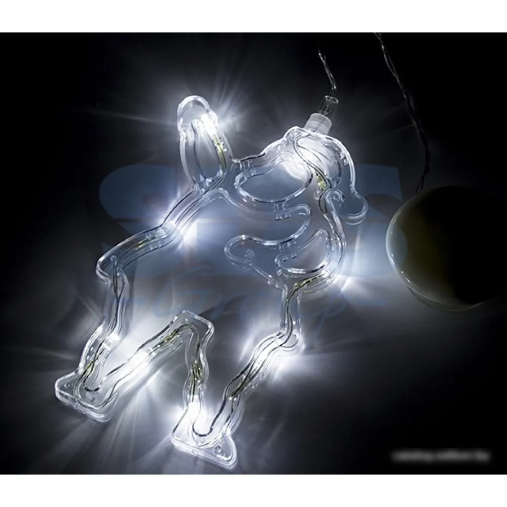 | Информация | Фигура светодиодная выполнена из пластикового короба в форме Санта Клауса внутри которого равномерно расположены 8 светодиодов. Фигура крепится на ровную гладкую поверхность на присоску, которая расположена на батарейном блоке на расстоянии 20 см от фигуры на подвесе. |