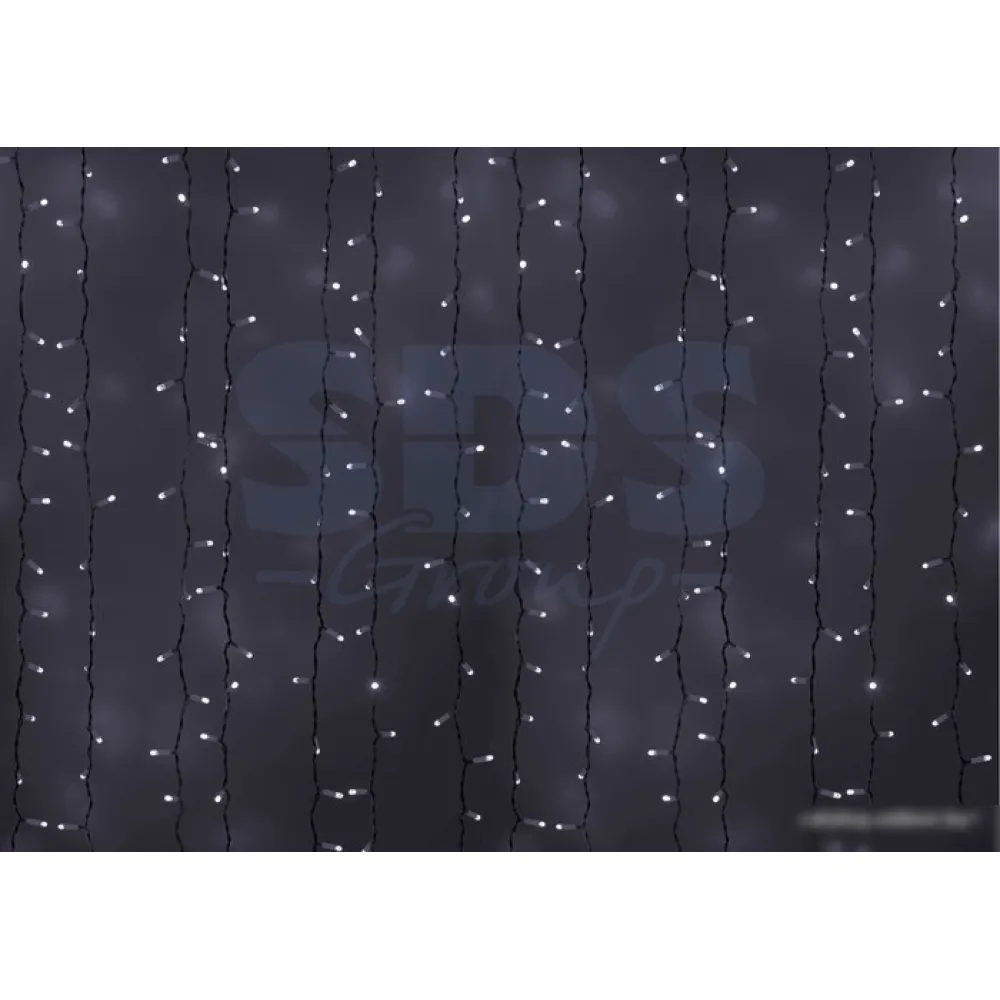 дождь (занавес), длина 2 м, 760 ламп, свечение мерцающее, IP44, 45 Вт, провод белый ПВХ