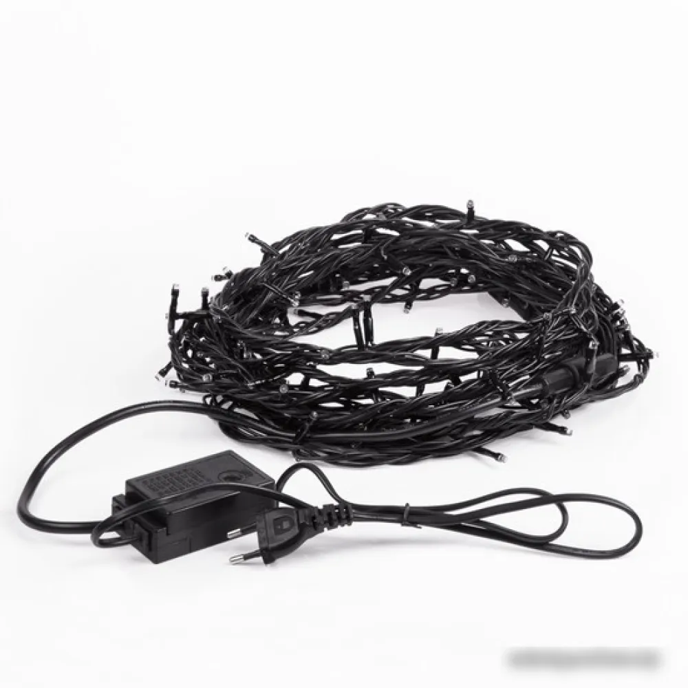 гирлянда, для использования в помещении, длина 20 м, 160 ламп, питание от сети, контроллер, свечение динамическое, IP20, 10 Вт, провод черный ПВХ