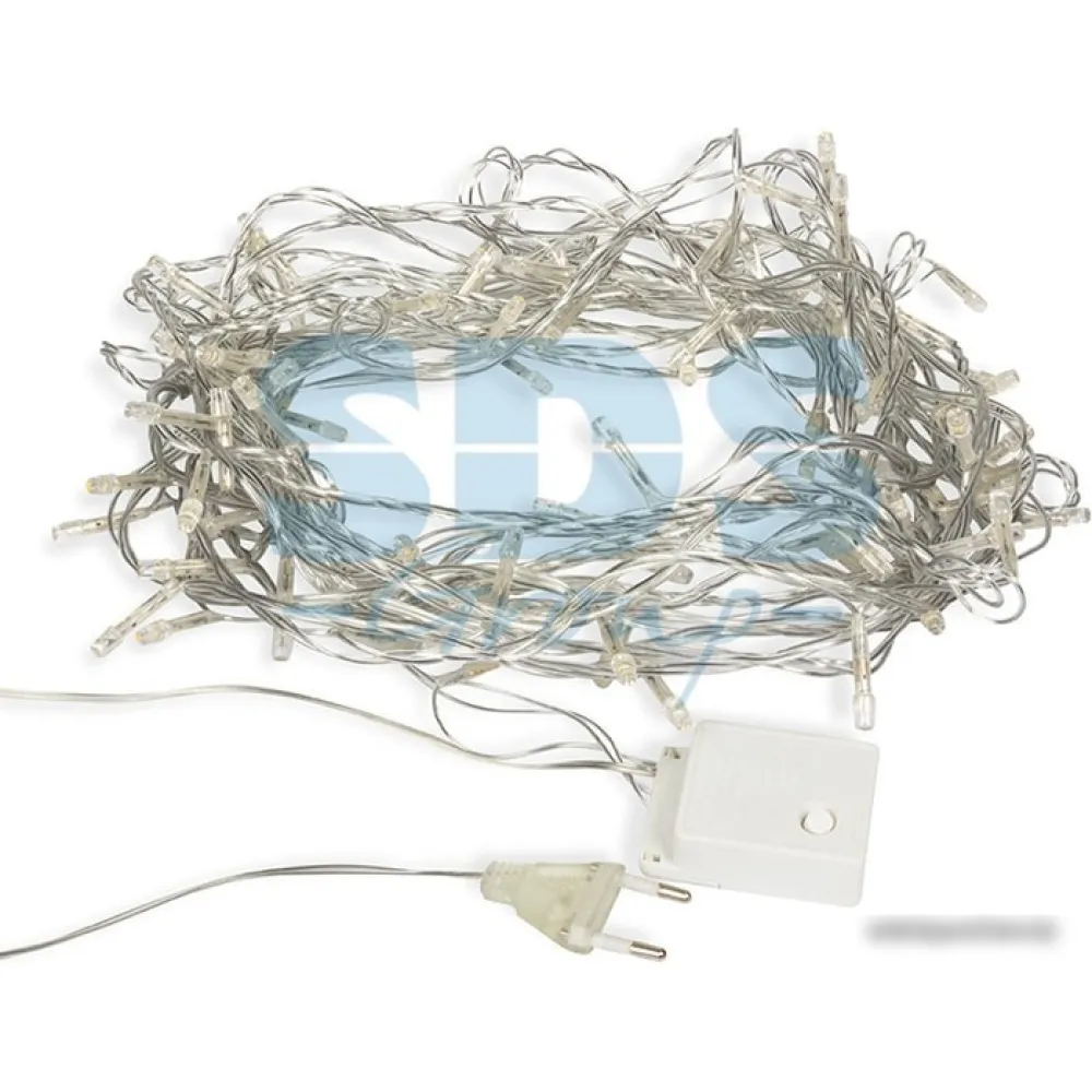 гирлянда, длина 10 м, 100 ламп, контроллер, IP20, 4 Вт, провод прозрачный ПВХ