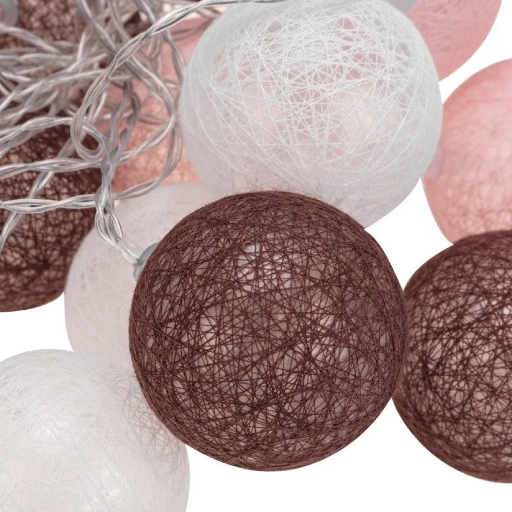 | Информация | - Тайские фонарики Вельвет – это светодиодная гирлянда, которая станет стильным и эффектным украшением вашего интерьера даже в выключенном состоянии благодаря своему уникальному дизайну. - На проводе, заключенном в прозрачную ПВХ-изоляцию, расположены 20 волшебных круглых фонариков, выполненных из хлопковых нитей. - Цветовая палитра гирлянды включает в себя гармоничные и спокойные оттенки: молочный, персиковый и коричневый. - Гирлянда питается от USB-разъема, который удобно крепится на дополнительном проводе длиной 30 см. - Обратите внимание, что гирлянда имеет защиту IP20 и предназначена исключительно для использования в помещениях. |