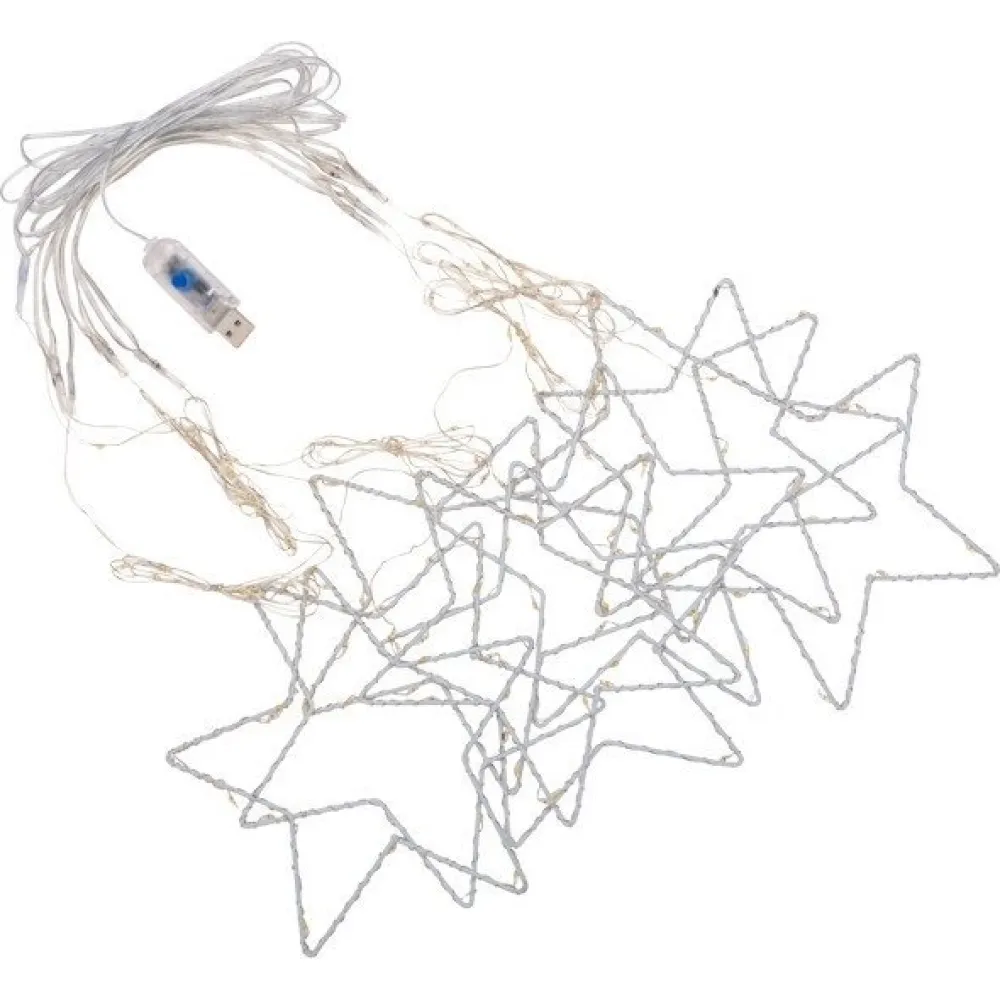 дождь (занавес), для использования в помещении, 1.5x1.15 м, 156 ламп, питание от USB, контроллер, свечение динамическое, IP20, провод серебристый
