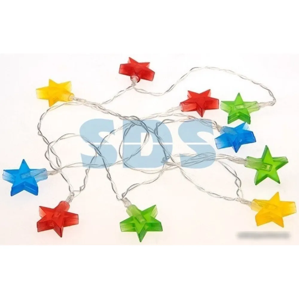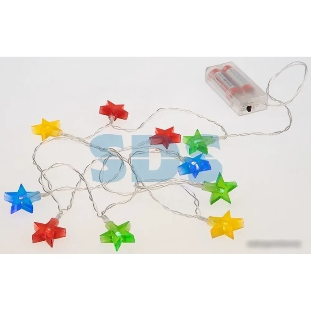| Информация | Светодиодная гирлянда «Звездочки» длиной 1,5 — оригинальное и эффектное украшение, которое подойдет для оформления как новогодней ели, так и отдельных предметов интерьера: гардин, ваз, скульптур, элементов мебели. Насадки, в виде матовых разноцветных звездочек, расположены по всей длине провода и подсвечиваются 10 разноцветными диодами, питающимися от двух батареек типа АА. Гирлянда выполняет роль акцентной подсветки в отапливаемых помещениях со стандартными условиями влажности и температуры. |