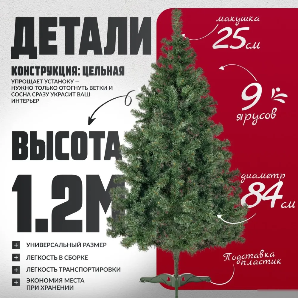 искусственная ель, литая+ПВХ, 1.2 м, цвет зеленый