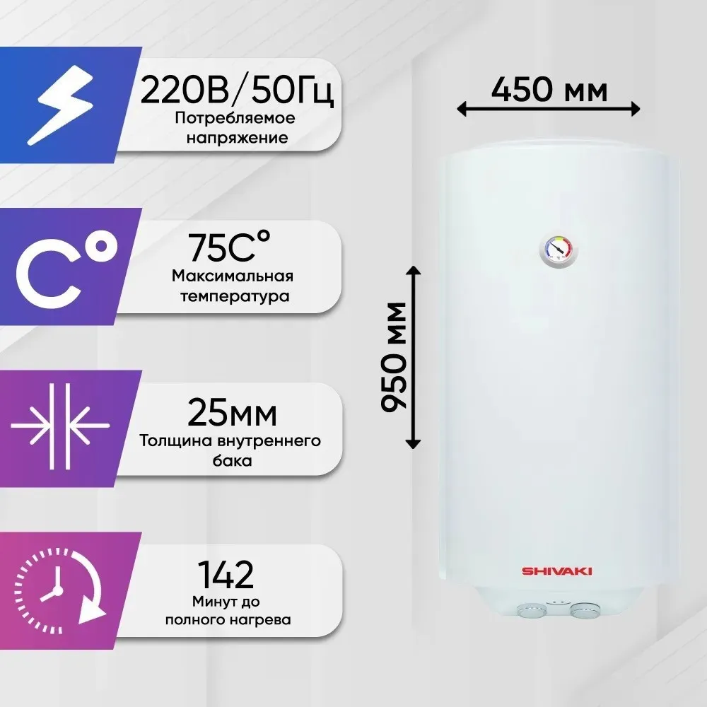 | Информация | - Накопительный электрический водонагреватель Shivaki SH WH 2.0 100 - идеальное решение для вашего дома. Он обеспечит вас горячей водой для всех бытовых нужд, будь то принятие душа, мытье посуды или уборка. - Благодаря легкой установке на стену, этот бойлер экономит пространство и делает установку простой и удобной. - Энергоэффективный водонагреватель SH WH гарантирует быстрое нагревание воды и длительное поддержание температуры благодаря качественной теплоизоляции и продуманной конструкции. - Защитные системы, такие как защита от перегрева и автоматическое отключение, обеспечивают надежную и безопасную эксплуатацию. - Защита от внутренней коррозии, магниевый анод и специальное покрытие внутреннего бака значительно увеличивают срок его службы. - Этот водонагреватель отличается высокой энергоэффективностью и сокращает затраты на электроэнергию. - Современный дизайн и интуитивно понятные элементы управления делают его идеальным выбором для установки в квартире или загородном доме, обеспечивая комфорт и удобство благодаря высокой производительности и надежности. |
