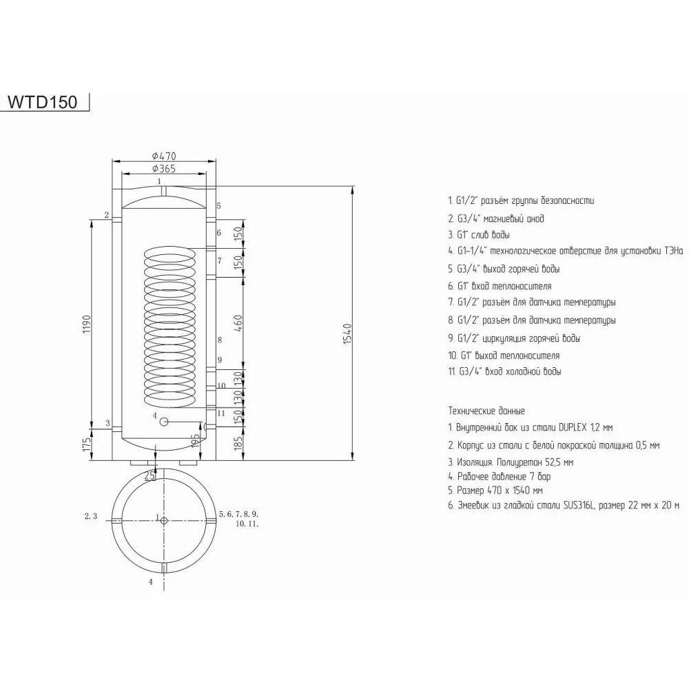 вертикальный/напольный, 150 л, 35 кВт, 154?47?47 см