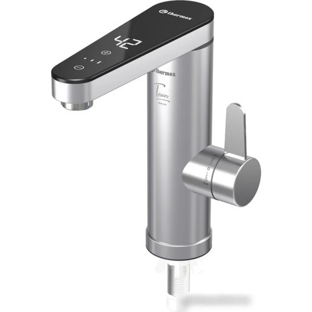 | Информация | - Современная конструкция корпуса. Монолитный корпус из нержавеющей стали в Thermex Tesoro выглядит не только стильно, но и защищает кран от механических повреждений, перепадам давления и обеспечивает стабильную работу устройства долгие годы. Новая форма излива сокращает теплопотери. А стильный дизайн в сочетании с черным цветом и сенсорной панелью управления добавляет смесителю утонченности и позволяет вписать его в любой интерьер. - Стабильный и мощный нагрев. Внутри Tesoro установлена колба и ТЭН из нержавеющей стали на основе сплава титана мощностью 3500 Вт. Такой ТЭН обладает не только высокой теплопроводностью, моментально нагревая воду, но также отлично защищен от образования накипи, ржавчины, коррозии, и служит дольше других аналогов представленных на рынке. - Простое и понятное управление. На верхней части излива расположена сенсорная панель управление, с помощью которой можно выбрать один из трех режимов мощности для достижения необходимой температуры нагрева. А фактическая температура будет отображаться на дисплее. - Удобное использование и простой монтаж. Водонагреватель подключается в обычную розетку и не требует сложного сантехнического монтажа благодаря крепежному комплекту. В изливе установлен аэратор для распыления воды даже при небольшом протоке. |