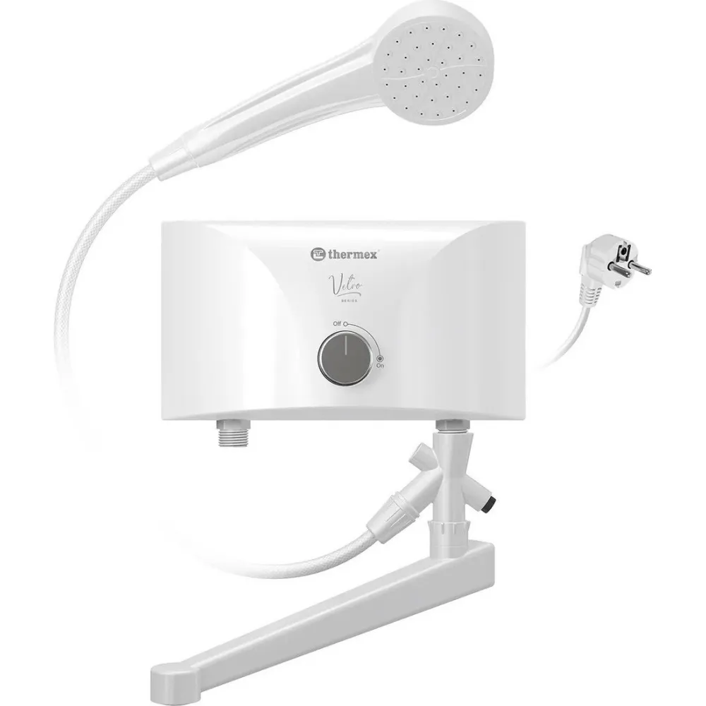 | Информация | Водонагреватель отличается простым монтажом и компактными размерами, мгновенно нагревает воду и идеально подходит для использования в городских квартирах или на даче. Душевая лейка, шланг, держатель и излив в комплекте. |