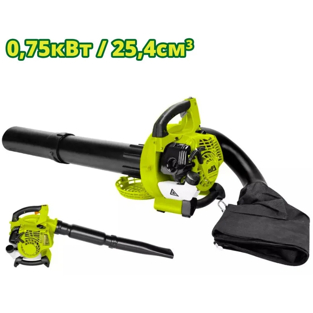 функция пылесоса, мешок для сбора мусора, бензиновый двигатель, 750 Вт, 1 л.с., бак: 0.5 л, 6 кг