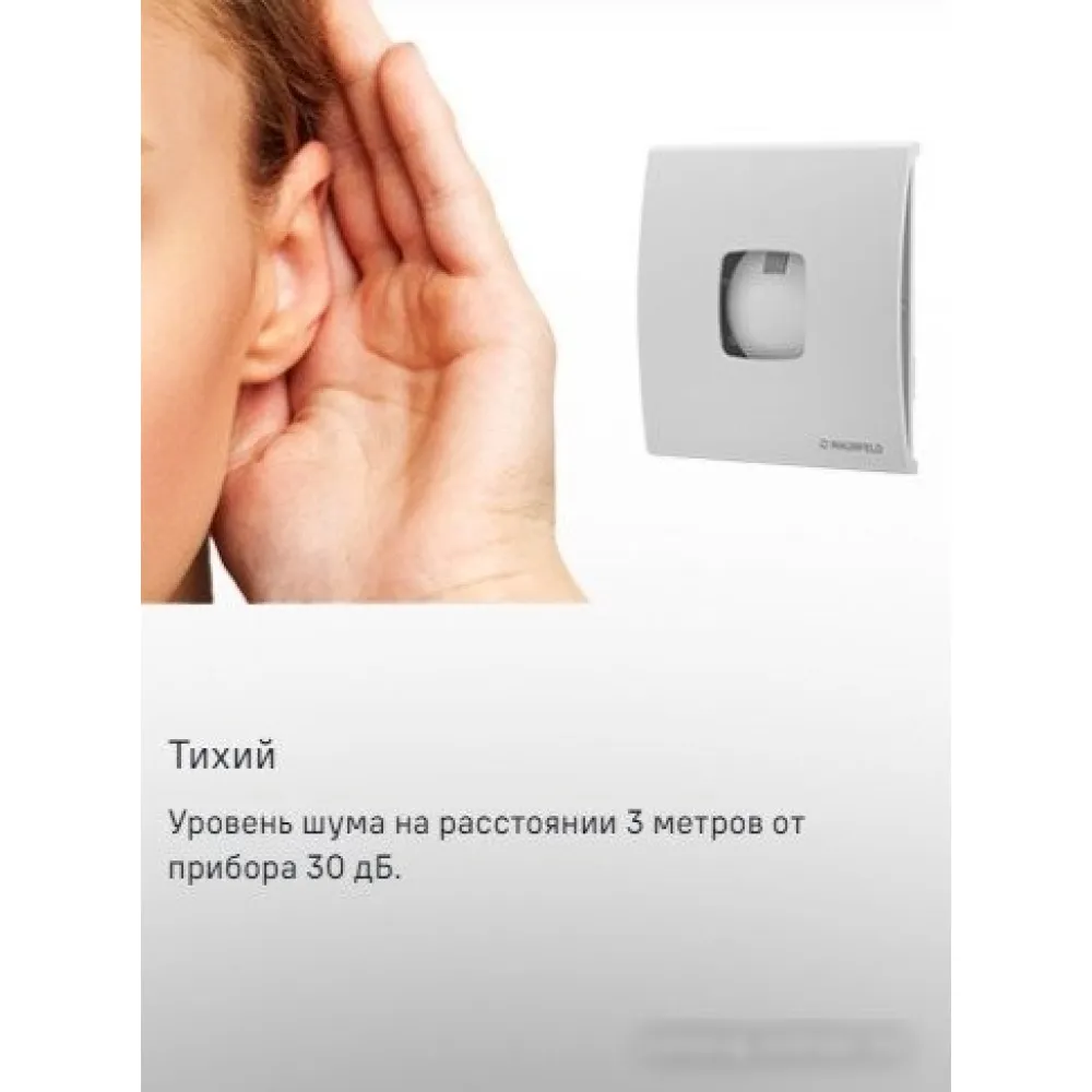 накладной осевой вентилятор, настенная установка, диаметр: 11.6 см, производительность: 185 куб.м/ч, 16 Вт, таймер (задержка отключения), белый